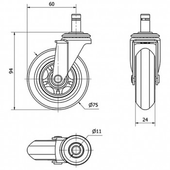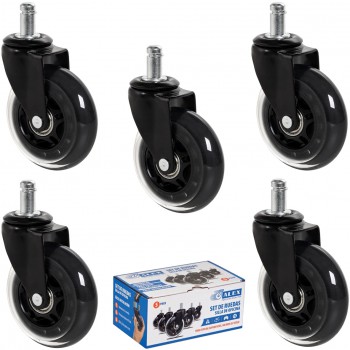 Ruedas universales de poliuretano transparente, diseñadas para una instalación rápida y sencilla. Cuentan con soporte de acero negro y están recomendadas para cargas de hasta 40 kg por rueda.