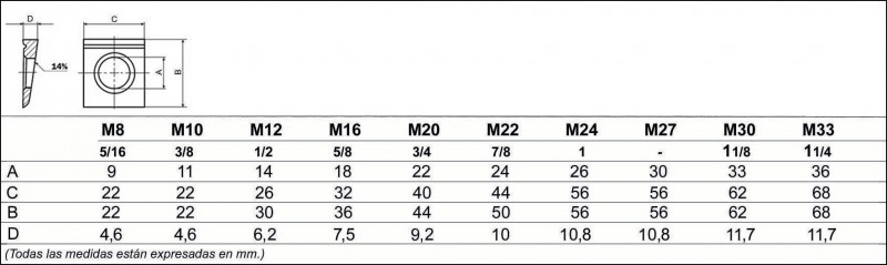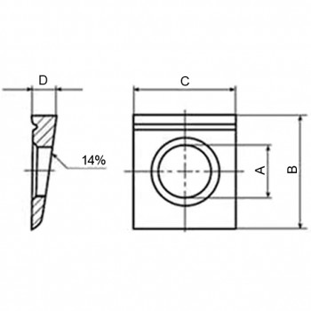 Arandela din-435 cuadrada 14% en cuna para perfiles "ipn", de acero