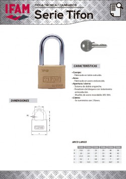 Los candados Tifón son líderes en el mercado de los candados de latón por su imbatible relación calidad-precio. Equipados con arco de acero endurecido, son una solución económica y de garantías para todo tipo de usos.