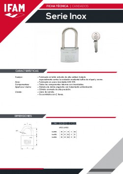 La serie de candados Inox de IFAM ofrece una alta resistencia a la oxidación en ambientes marinos y de alto porcentaje de humedad, además de un buen nivel de seguridad. Los candados Inox de IFAM responden a las necesidades de quienes precisan versatilidad de producto y servicio junto a resistencia a la intemperie.