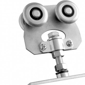 Carro colgante para portones de hasta 300 kg. sometidos a condiciones de trabajo extremas. Tope frena contra el chasis y evita el golpe de las puertas. Resistente a altas temperaturas y cargas de viento. Placas de montaje para madera y metal. Perno de 150 mm permite un montaje más rápido.