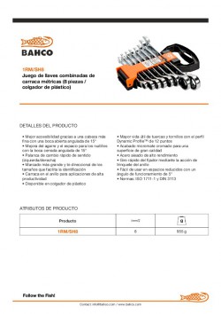 Juego de llaves combinadas de carraca métricas (8 piezas / colgador de plástico) ref. 1rm/sh8