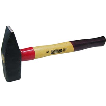 Martillo de montador "Rotband" con mango de fresno, cabeza forjada de acero especial, cuidadosamente endurecida y templada, pintada al fuego en negro. Caras pulidas, bordes de seguridad, vaina de acero endurecido, mango fijado mediante la vaina y la arandela de sujeción.
