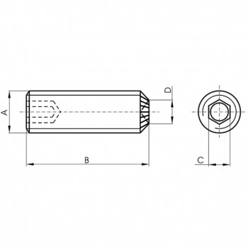 Tornillo din-916 sin cabeza con hueco hexagonal y extremo biselado moleteado hueco, de acero (12.9) y rosca métrica