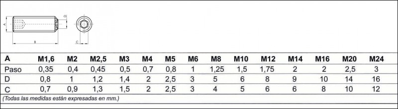 -Tipo de rosca: Métrica.