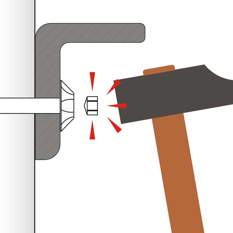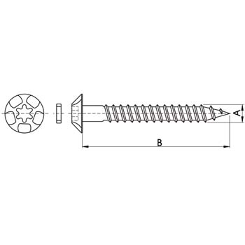 Tornillo inviolable para aglomerado y madera, con cabeza embellecedora y mortaja Torx. Rosca especial para madera y tacos. Acero templado de alta resistencia. Incluye tapón de Zamac de color igual al del tornillo.