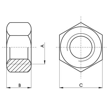 Tuerca din-934 hexagonal, de acero (c-10) y rosca sae