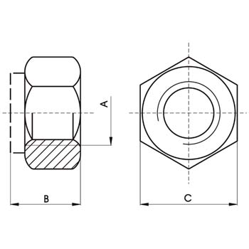 Tuerca din-934 hexagonal, de acero (c-8) y rosca whitworth(bsw)/unc